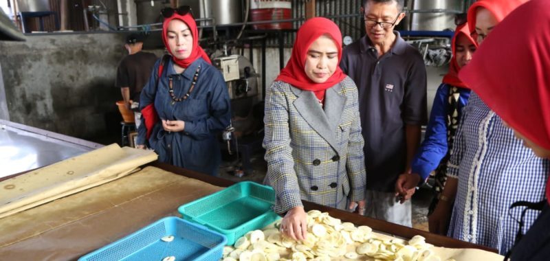 Di Kota Malang, rombongan TP PKK Lampung Selatan yang dipimpin langsung Plt Ketua TP PKK Hj. Winarni mengunjungi sentra usaha mikro kecil menengah (UMKM) tepatnya di Keripik Buah Glory.