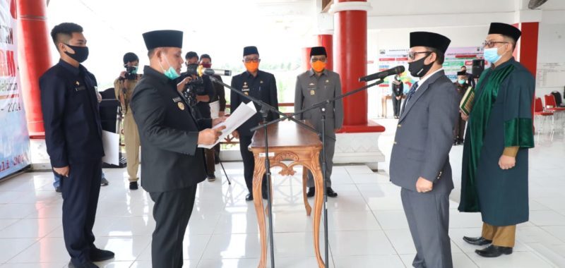 Kalianda, Barometerlampung.co – Bupati Lampung Selatan, H. Nanang Ermanto Melantik dan Mengambil Sumpah Jabatan Direktur PDAM Tirta Jasa Kabupaten Lampung Selatan terpilih, Rudi Apriadi Periode 2020-2024 di Aula Sebuku Rumah Dinas Bupati Lampung Selatan, Senin (13-7-2020).