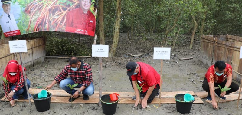 Kalianda, barometerlampung.co – Ketua Komisi IV DPR RI, Sudin, SE, Bupati Lampung Selatan, H. Nanang Ermanto, Sekretaris Daerah, Thamrin, dan Ketua Tim Penggerak PKK, Hj. Winarni Nanang Ermanto melakukan penanaman perdana bibit mangrove, di Desa Sumber Nadi, Kecamatan Ketapang, Lampung Selatan, Minggu (31/1/2021).