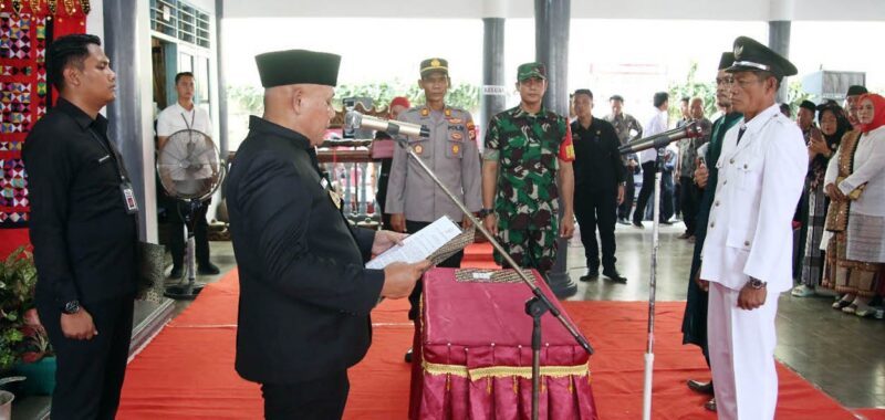 Pelantikan dan pengambilan sumpah jabatan kepala desa PAW Desa Kecapi Kecamatan Kalianda berlangsung di Balai Desa Kecapi, Kecamatan Kalianda, Rabu siang (9/8/2023).