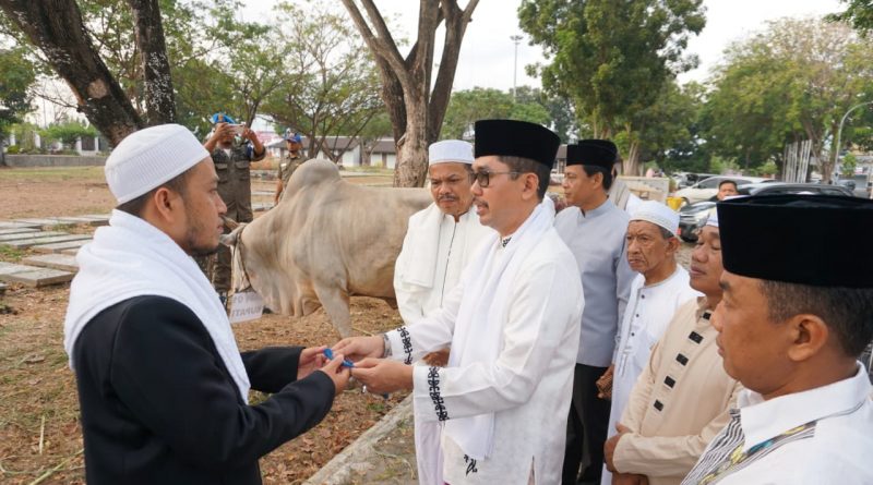 “Kami dari Pemerintah Kabupaten Lampung Selatan menyerahkan hewan kurban ini, untuk selanjutnya didistribusikan kepada masyarakat yang berhak menerimanya,” ujar Fredy yang diterima Ketua Takmir Masjid Agung Kalianda Ustad H. Zainul Ibad, M.Pd