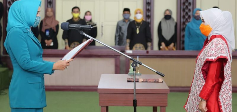 Winarni dilantik langsung oleh Ketua Tim Penggerak PKK Provinsi Lampung, Riana Sari Arinal di Gedung Balai Keratun, Lantai III, Kantor Gubernur Lampung, Selasa (12/5/2020).