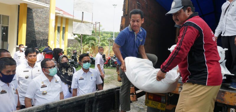 Di Kecamatan Kalianda, pendistribusian beras dikawal langsung Penjabat Sementara (Pjs) Bupati Lampung Selatan, Drs. H. Sulpakar, MM, pada Rabu pagi (14/10/2020).