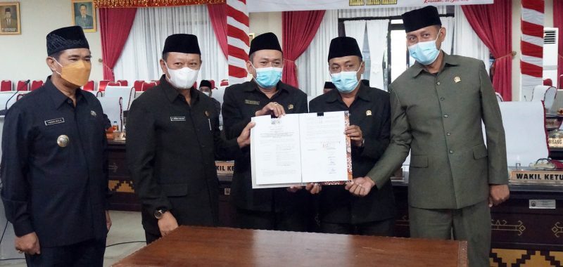 Sementara, Ketua DPRD Hendry Rosyadi, SH, MH didampingi Wakil Ketua I Agus Sartono, Wakil Ketua II Agus Sutanto, dan Wakil Ketua III Waris Basuki, menandatangani kesepakatan bersama tersebut dari ruang sidang gedung DPRD setempat.