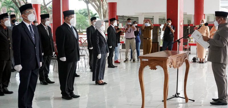Pelantikan pejabat dilaksanakan dengan menerapakan protokol kesehatan secara ketat sesuai tugas kedinasan di masa pandemi Covid-19.