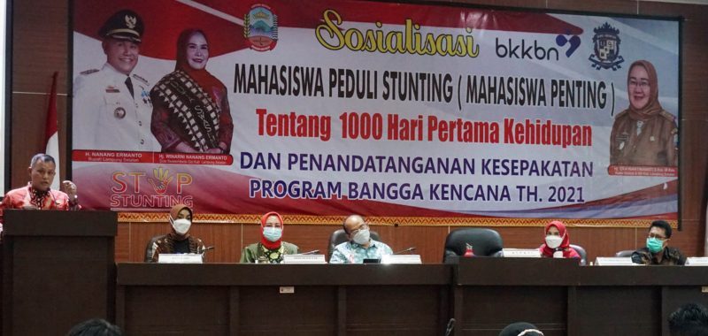 Hal itu disampaikan Bupati Lampung Selatan H. Nanang Ermanto saat membuka acara sosialisasi mahasiswa peduli stunting (Mahasiswa Penting) tentang 1000 hari pertama kehidupan (HPK) di Aula Rajabasa, kantor bupati setempat, Jumat (22/10/2021).
