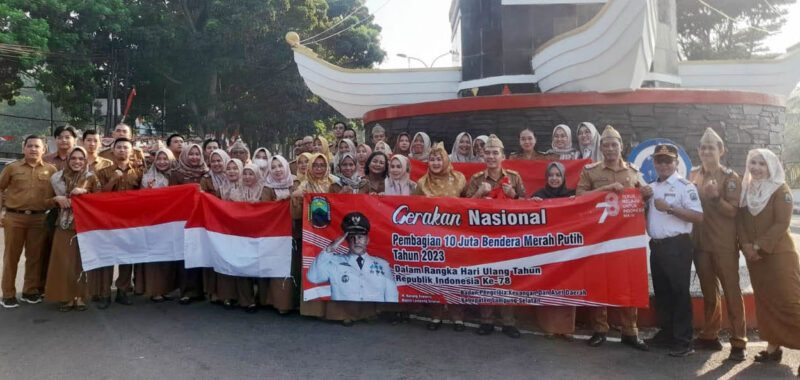 Lampung Selatan, Barometer Lampungco – Pemerintah Kabupaten (Pemkab) Lampung Selatan melalui Badan Pengelola Keuangan dan Aset Daerah (BPKAD) membagikan bendera merah putih kepada masyarakat di Bundaran Tugu Adipura, Kalianda, Senin (7/8/2023).