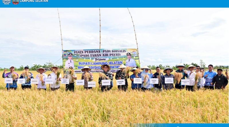 Apresiasi itu disampaikan Bupati Egi saat menghadiri Panen Raya Perdana Padi Varietas Biosalin di Desa Bandar Agung, Kecamatan Sragi, Kamis (6/11/2025).