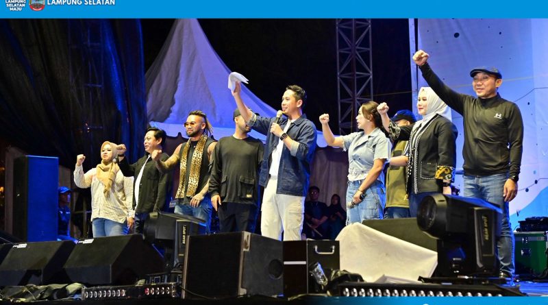 Kalianda – Lampu warna-warni memancar dari panggung utama, sorak-sorai pecah dari ribuan warga yang memadati Lapangan Korpri, Kalianda.